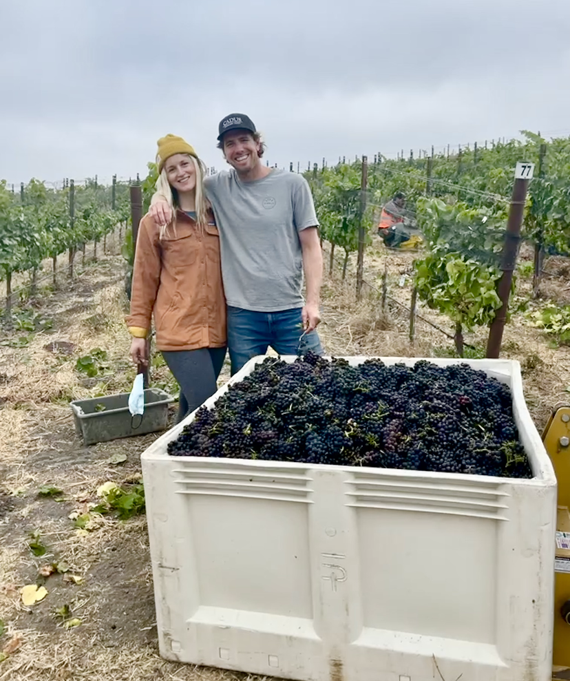 A husband - wife team who combine experiences to craft their wines. Together they have worked for over a dozen wineries and vineyards around the world where the people, cultures, and wines have influenced their approach to growing and making wine. Rachel Eck holds a degree in Viticulture from Cal Poly SLO and gained experience working under iconic producers such as Stephen Ross, Paul Lato, and Te Kairanga. Rachel is a licensed Pest Control Advisor and manages the tasting room in downtown SLO. Tyler Eck followed a degree from UCSB with a Viticulture and Oenology degree from Lincoln University in New Zealand. His travels led to working for several pioneering wineries including Dry River, Peay Vineyards, Stefano Lubiana, and Domaine Francois Villard. Since 2014 Tyler has been the Associate Winemaker for Fess Parker Winery. They live in Pismo Beach, with their black lab Cassidy and are only a few miles drive from the vineyards they work with.