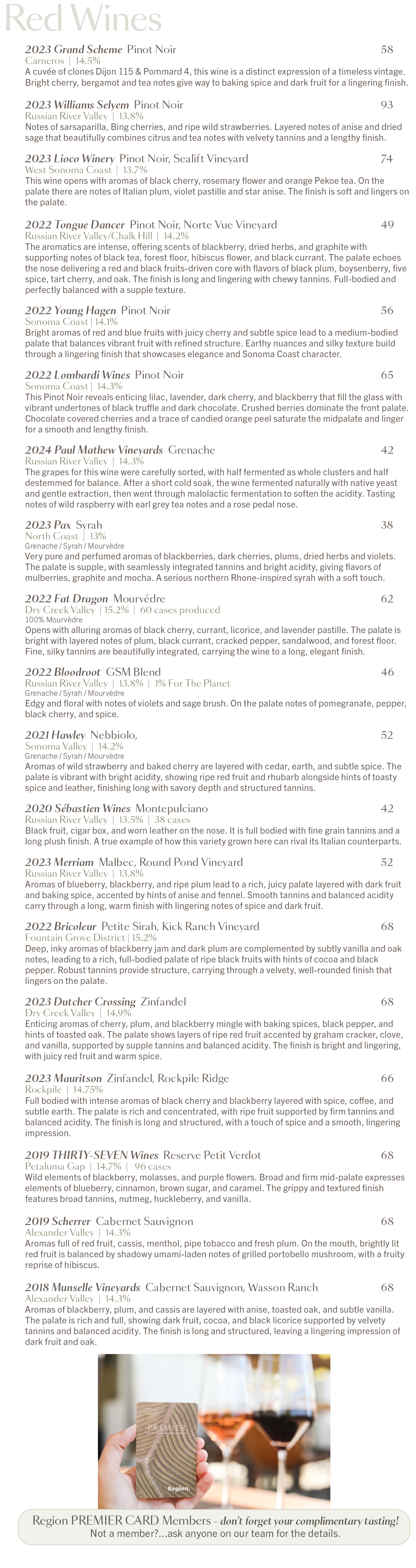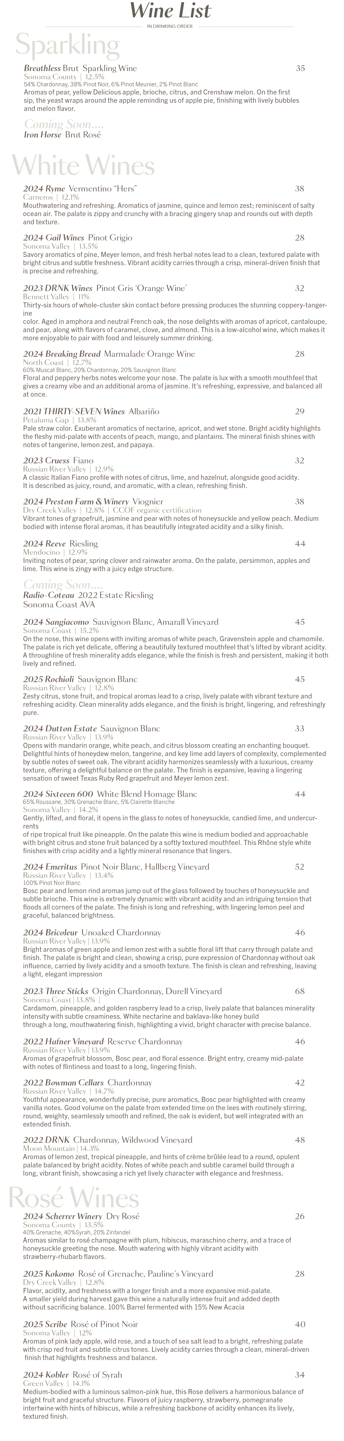 Wine List & Food Menu